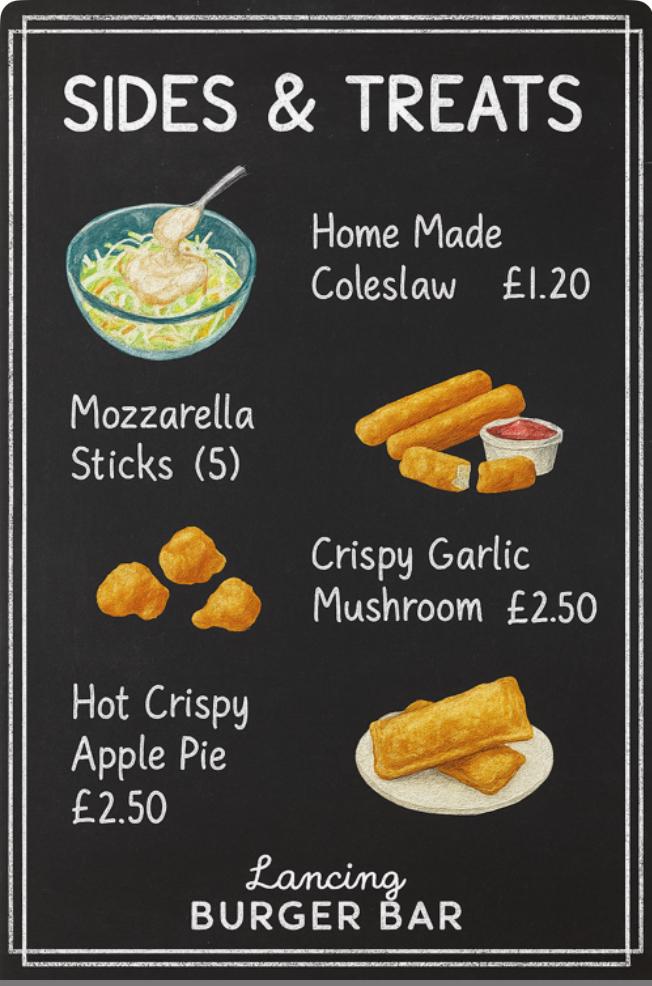 Lancing Burger Bar is a beloved gem nestled in the heart of Lancing. This family-run establishment has been a staple for over 25 years, cherished by locals and tourists alike. The restaurant sits at 129 South Street, easily accessible and inviting. The unpretentious facade conceals a spotlessly clean kitchen where fresh food is prepared to order. The owners are known for their friendly service, creating a welcoming environment perfect for every occasion.